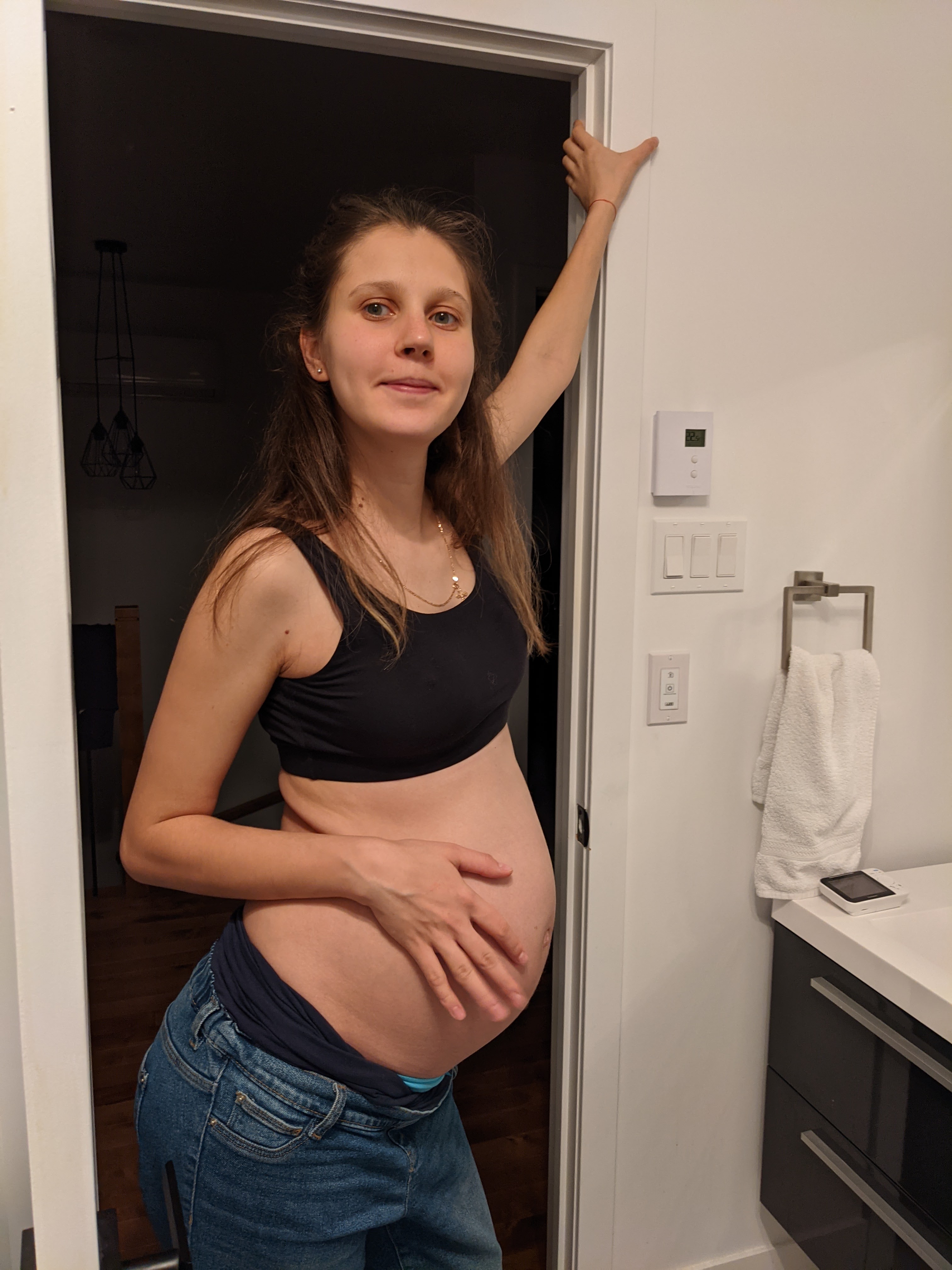 So far, I have gained about 12.5 kilos of weight and my weight gain slowed down a bit on the past few weeks – likely because of that nausea that was making me not hungry most of the time. I had no sense of hunger of the few last weeks so I was eating smaller portions of food trying to figure out of this was enough – I think since the baby turned, I am now much more in tune with my stomach and hunger feelings.