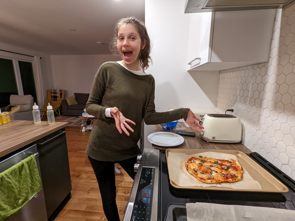 The last few weeks were really cold in the Montreal area – with the exception of the last few days – so every weekend, I was trying to come up with the activities you can do inside. A week ago or so we made some homemade pizza – Nicolas had his with salami and jalapenos and mine were with bocconcini and basil. I also made a dough from scratch for it. I can’t say it was my favorite dough – I wish it was softer – but overall, it was a fun activity to do.