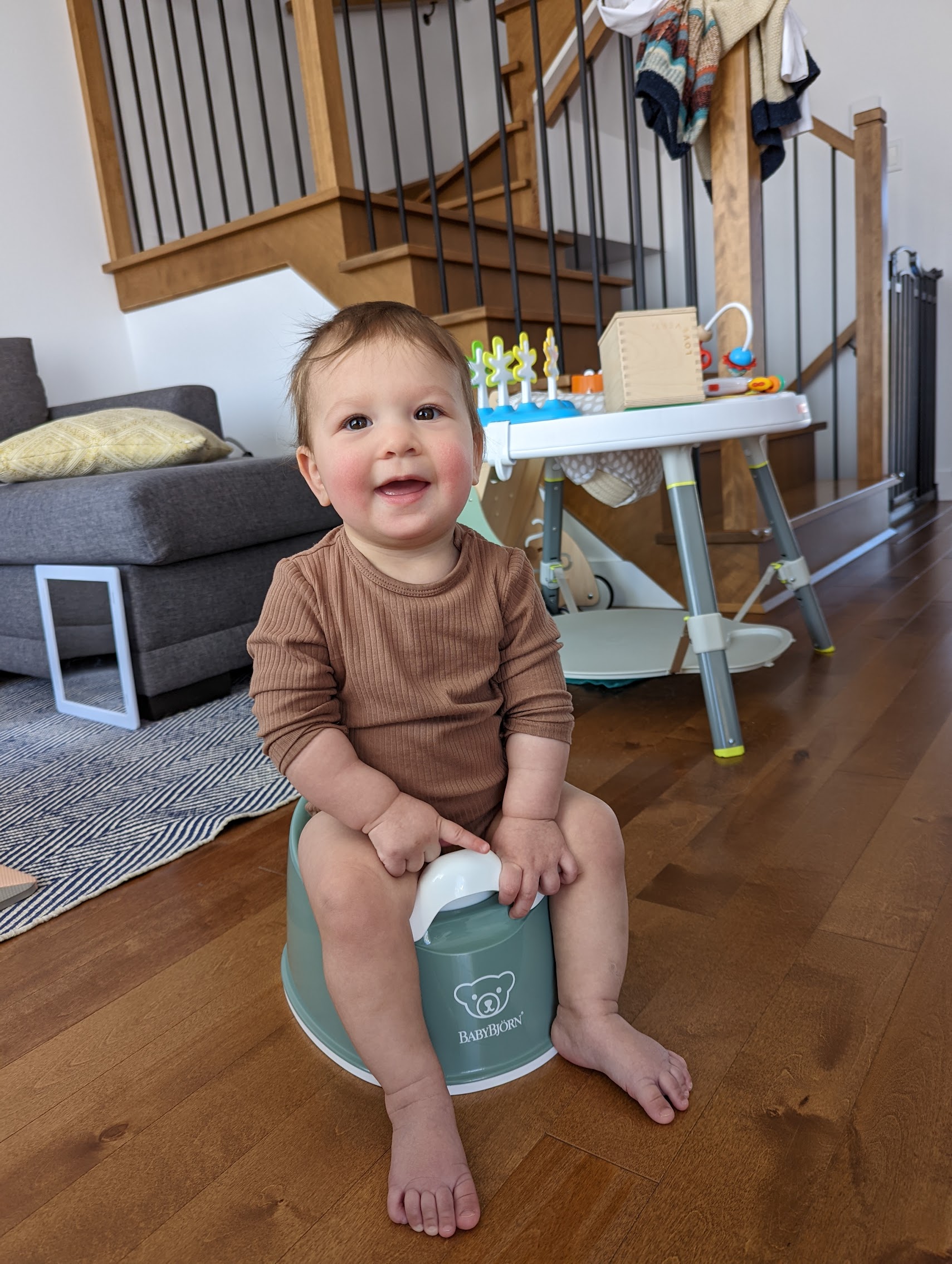 On the baby news, just today, Sofia got her first tooth piercing through her gums. This is exciting because it has been 9 months since we are waiting for it! In other news, I bought her a small potty to start a very early and very gentle potty training. She seems to be having fun with it but we have not tried yet using it for its purpose. So far she is just practicing sitting 🙂