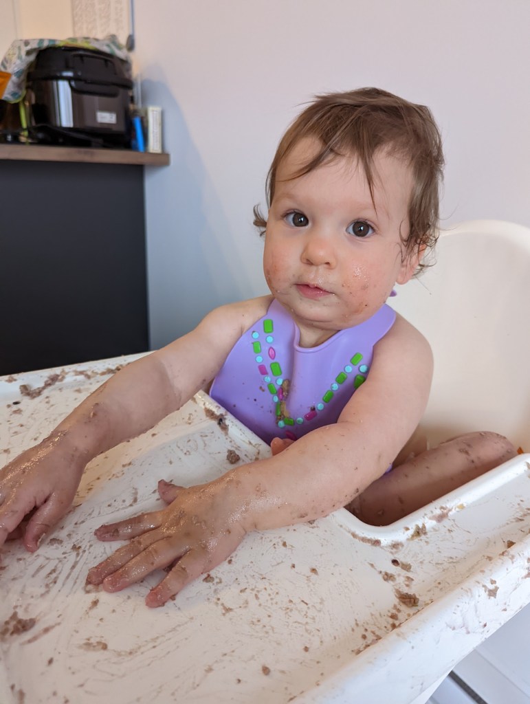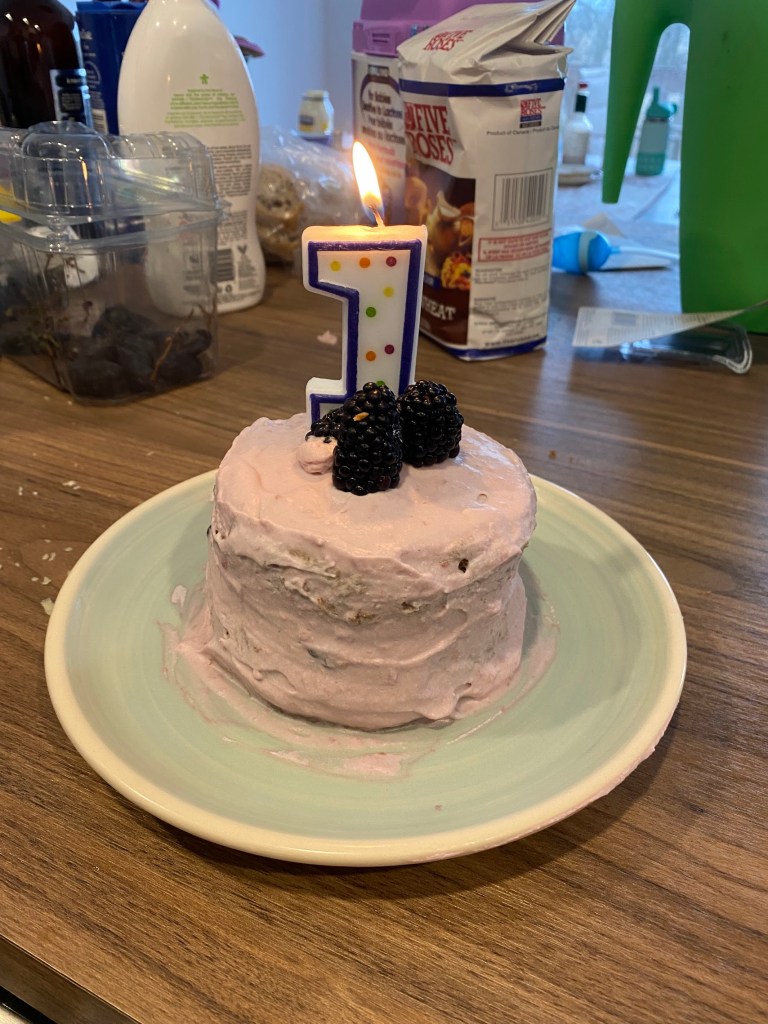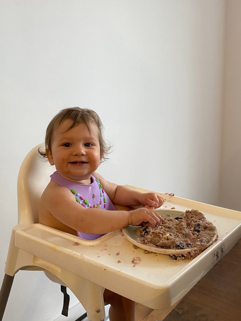 Two days after my birthday, Sofia turned one! It was a work day for me but I still wanted to make her a birthday cake. I knew I could buy it but I loved the idea of baking it. I could also check what exactly goes into it! I baked the base with apple sauce and wholewheat flour and made the frosting with raspberries and coconut whipped cream. The coconut cream did not work out as well as I would have liked – it was the first time I used it (we don’t really eat dairy so I did not have any real cream). I managed to work it out at the end She really liked the cake but I also feel like she would have liked any cake.