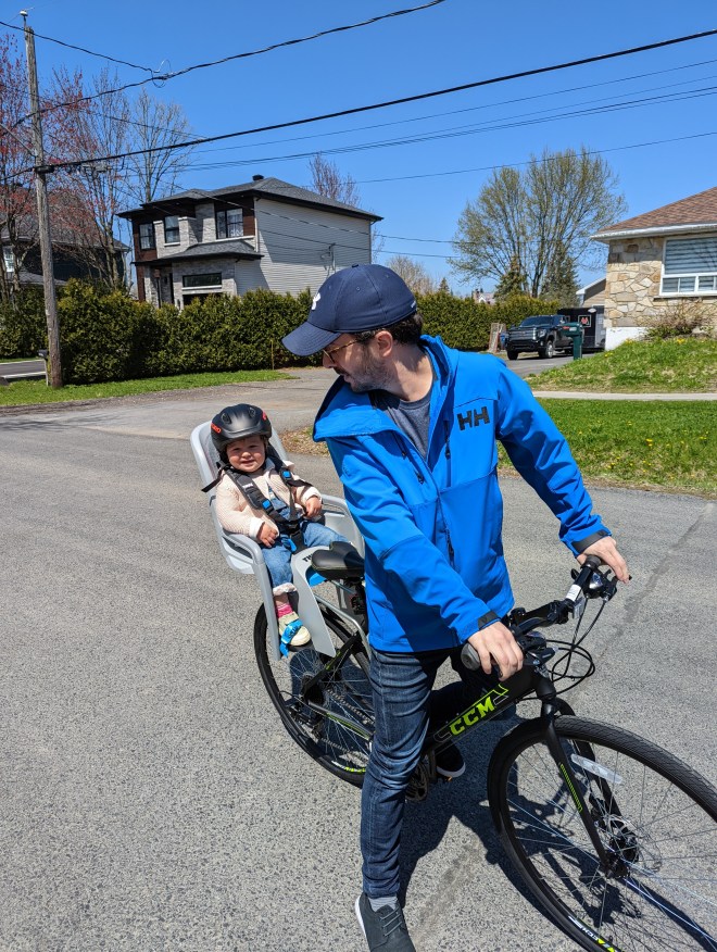 We are really lucky to be a few hundred meters away from a relatively safe biking path and we often take my daughter to bike with us – Nicolas cycles to his grandparents (which is about 40k back and forth) almost every weekend. I think it is important to teach your kids healthy modes of transportation from the start and if someone was ever to report me for anything like that, I am going to tell them to **** off.