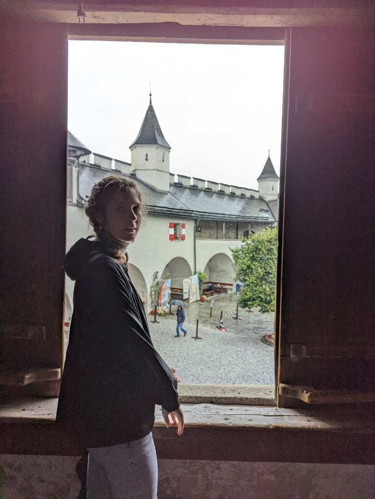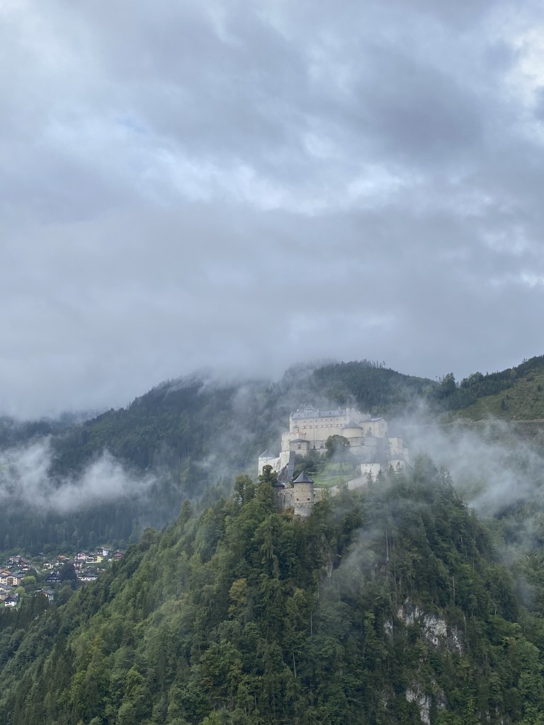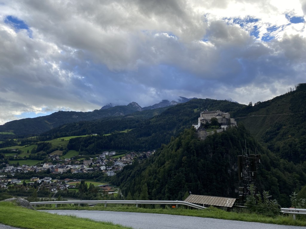 We had a bit more than 3 full days in the mountains. We started our trip by renting a hotel in the city called Werfen. Our hotel room had a view directly on the castle Hohenwerfen. This is what I could see from our balcony: