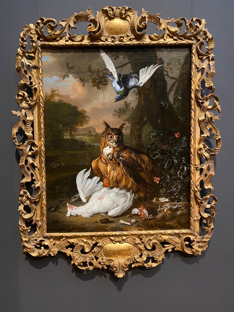 This is “A Eurasian Eagle-Owl with Other Birds in a Landscape” by Dirk Valkenburg. Again, I just low the colors and the realism – I can feel that this owl is glaring straight at me.