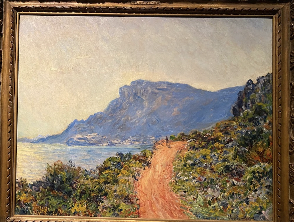 I was walking by this picture and thinking to myself that it looks like Monet. And it is Monet who is my favorite painter. Apparently, my eyes can’t be deceived with him. This is “La Corniche near Monaco” where everything glitters in the sunlight.